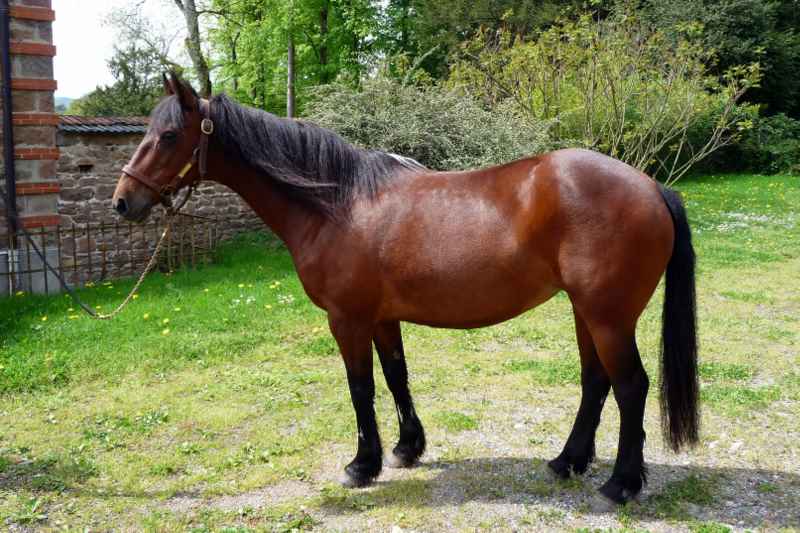 Choco est en pleine forme, trottine pour aller dans son paddock le matin, pousse la porte pour sortir, hennis quand on rentre dans l'écurie, elle a l'œil vif et un beau poil.